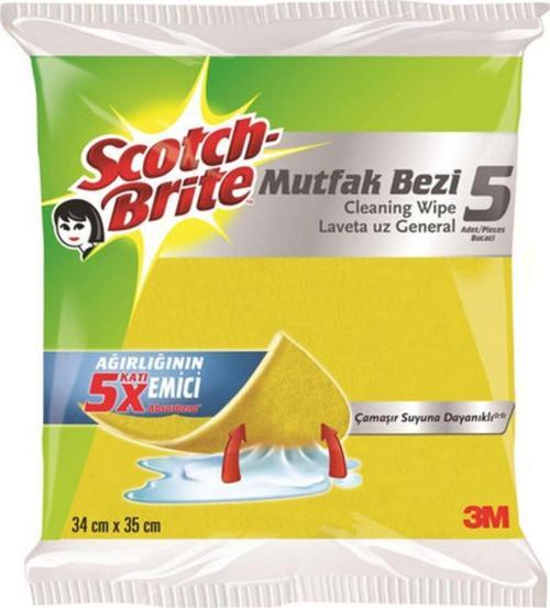 Scotch Brite 5'li Sarı Temizlik Bezi Mutfağın uzun zamandır vazgeçilmez bezi. Her bez kendi ağırlığının 5 katı kadar su emebilecek performansa sahiptir. Tüm yüzeylerin temizliğinde kullanıma uygundur. Çamaşır suyuna dayanıklıdır.