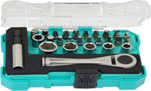 Kolay ileri ve geri döndürme işlemi için 72 diş 2 yollu cırcır paslanmaz çelik sap Mini boyut, daha küçük ve daha dar noktalara kolayca girer Uçlar, kolay spesifikasyon tanımlaması için renkli halka ile birlikte gelir En yaygın kullanım uçlarını ve soketlerini kapsayan RoHS standardına uygun EVA tepsisi Kolay taşıma ve saklama için askılı tasarımlı kompakt kutu İçindekiler: 5 adet 1/4” Sürücü soketi: 6, 7, 8, 10, 12mm 18 adet 1/4” UÇLAR: 3; 0, 4; 0, 5; 0, 6; 0 #1, #2, #3, PZ1, PZ2, PZ3, H3; 0, H4; 0, H5; 0, H6; 0 T10, T15, T20, T25 1PC Manyetik Bit Adaptörü:60mm(L) 1 ADET 1/4” Hex(erkek); 1/4” soket(erkek) adaptör 1 ADET 1/4 "72 Diş paslanmaz ters çevrilebilir cırcır kolu 1 ADET 1/4” kare sürücü (Dişi) ila 1/4” altıgen uç tutucu Plastik kasa: 130x90x40mm;