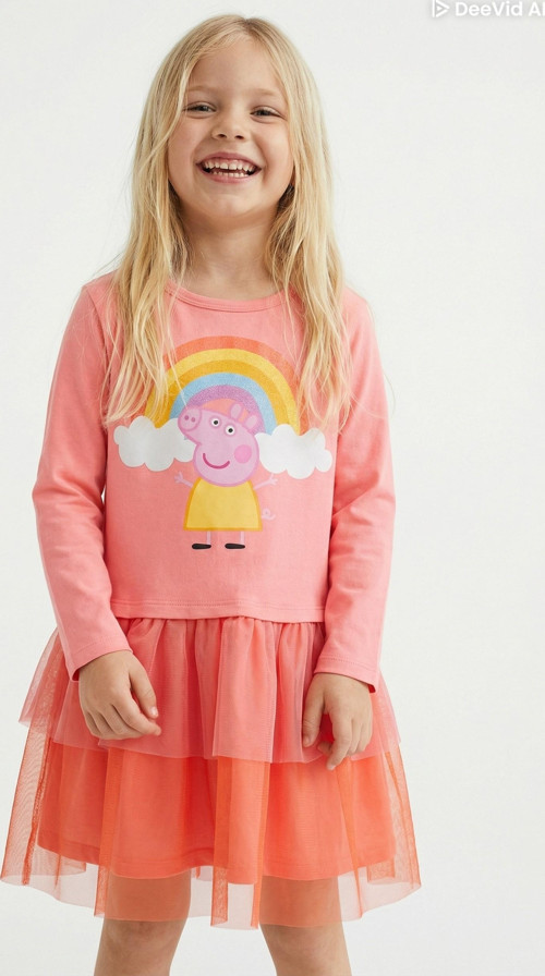 Rengarenk tasarımı ve sevimli Peppa Pig baskısıyla kız çocuklarının favorisi olmaya aday bu elbise, hem günlük kullanımda hem de özel günlerde şık bir görünüm sunar.
