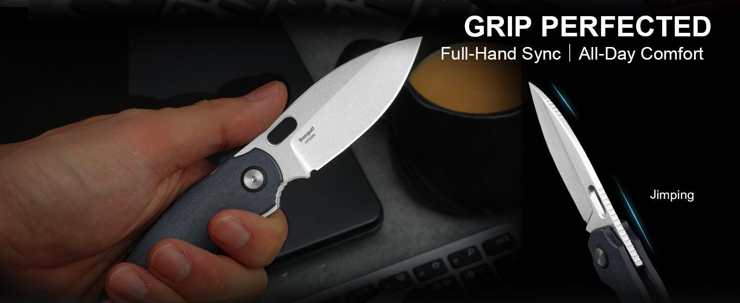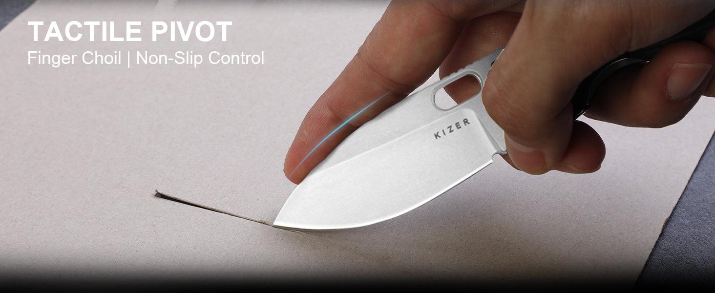 Parmak çevisi, parmağınızın doğal kıvrımına uyacak şekilde şekillendirilmiştir ve oyma veya ekipman sökme gibi detaylı işler için sabit bir dönüş noktası oluşturur. Bu ergonomik tasarım, uzun süreli kullanımda el yorgunluğunu azaltır ve bıçağın elinizin doğal bir uzantısı gibi hissetmesini sağlar. Eklenen tırtıklar, daha iyi kontrol ve daha güvenli kullanım için ekstra kavrama sağlar.