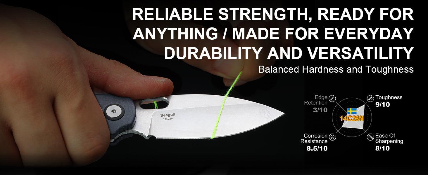 14C28N çelik, sertlik (58-59 HRC) ve tokluğun ideal bir karışımını sunarak, onu EDC ve dış mekan kullanımı için ideal bir tercih haline getirir. Keskinliğini iyi korur, korozyona karşı dayanıklıdır ve çeşitli ortamlarda güvenilir performans gösterir.