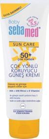 • UVA + UVB filtresi ve E Vitamini ile güneşin zararlı ışınlarına karşı 3 etkili koruma! \n• Hassas ve güneşe duyarlı ciltler için Sebamed Baby Sun Care SPF 50+ Çok Yönlü Koruyucu Güneş Kremi \n• İnülin ve Lesitin yoğun nemlendirme sağlar