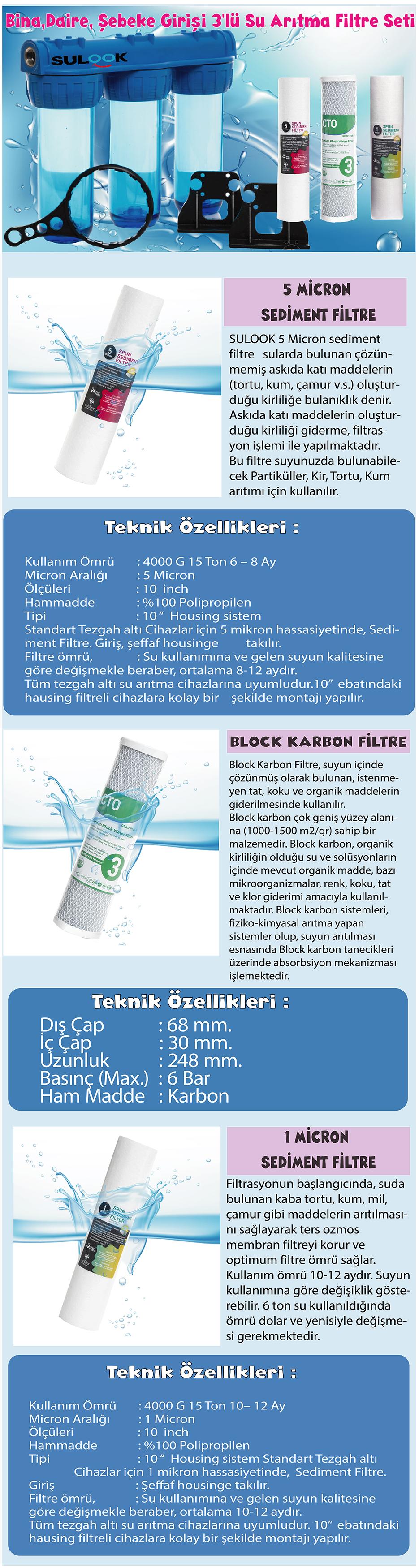 Şebeke Daire Bina Girişi Su Arıtma Sistemi 3Lü Süper Ekonomik Set