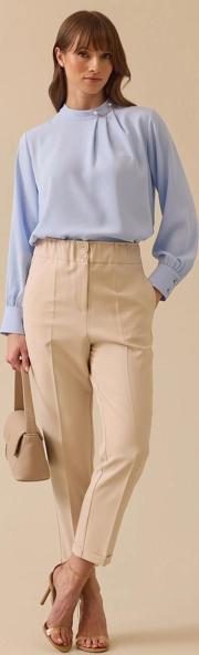 Detay: Klasik ve zarif bir görünüm arayanlar için ideal olan bu Design koleksiyonundan pantolon, bilek boyu, düz kumaş özelliği ve lastik beli ile dikkat çekiyor. Manşet detayları ve düğmeli kapama şekli, pantolonun şıklığını artırırken, rahat bir kullanım sunuyor. Dokuma olan bu pantolon, hem iş ortamında hem de özel etkinliklerde şıklığınızı koruyacak mükemmel bir parça olabilir;