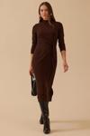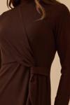 Detay: Dik yaka tasarımıyla sade bir şıklık sunan diz altı boy yünlü elbise, dar form kesimiyle minimalist tarzı zarif bir siluete dönüştürüyor. Yünlü kumaşı sayesinde hem sıcak tutar hem de doğal dokusuyla konfor sağlar. Günlük stilinize sofistike bir dokunuş katan bu elbise, sade detaylarıyla dikkat çekiyor;
