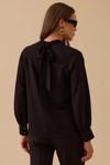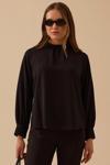 Detay: Dik yaka ve uzun takma kol detaylarıyla zarif bir duruş sunan bu regular kesim bluz, şık tarzı benimseyenler için ideal bir parçadır. Bel hizasında sonlanan tasarımı, düz dokuma viskon kumaşıyla sade ve sofistike bir görünüm sağlar. Düğme aksesuarları ve düğmeli kapama şekliyle klasik şıklığı modern çizgilerle buluşturur;