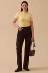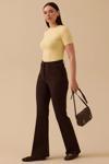 Detay: Yüksek bel tasarımıyla zarif bir duruş sunan fermuarlı pantolon, Aila kalıbı ve tam boy ispanyol paça kesimiyle klasik stile modern bir yorum katıyor. Düz dokuma örme kumaşı sayesinde hem şık hem de konforlu bir kullanım sağlıyor. Günlük kombinlerden özel davetlere kadar geniş bir kullanım alanı sunan bu pantolon, feminen ve güçlü bir siluet oluşturuyor;