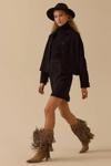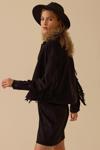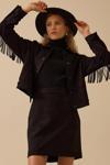 Detay: Gömlek yaka detayına sahip uzun kollu düğmeli süet ceket, regular kesimi ve normal bel yapısıyla şık kombinlerin vazgeçilmez parçası oluyor. Bel hizasında biten düz dokuma kumaşı, zarif görünüm sunarken takma kol tasarımıyla klasik stile modern bir dokunuş katıyor. Düğme aksesuarlarıyla tamamlanan bu ceket, özel davetlerden günlük şıklığa kadar geniş bir kullanım alanı sağlıyor;