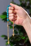 Sedefimsi Deniz Mavisi Gold Püsküllü Zaza Tesbih