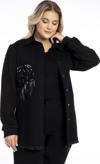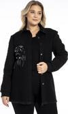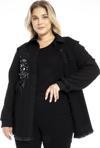 Detay: Gömlek yaka, düğmeli, basen altı, işleme detaylı kot mont;