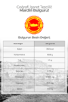 Coğrafi işaret tescilli Mardin Bulguru’dur. ; Bulgur, temizlenmiş, pişirilmiş, kurutulmuş, kabuğu soyulmuş ve sınıflandırılmış buğday ürünü olarak tanımlanır ve durum buğdayı kullanılarak elde edilir. ; Beslenme açısından önemli bir yere sahip olan bulgur, sağlıklı ve lezzetli bir tahıl alternatifidir. ; Islatmayın, yıkamayın veya suda bekletmeyin. ; 1 bardak bulguru 2 bardak kaynamış suyla pişirin. ; Gramaj: 1.000 gr ; Menşei: Türkiye ; Raf ömrü: 2 yıl ; Alerjen: Gluten içerir. ; Saklama Koşulları: Serin, rutubetsiz ve güneş ışığı olmayan yerlerde saklayınız. ; İçli köfte ve bulgur köftesi yapımında kullanılır.