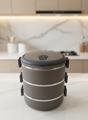Freshbox  3 Katlı Yemek Termosu Sefer Tası 1,8 Lt Koyu Kahverengi (CAPPUCİNO) TR'de Tek Renk - Image 1