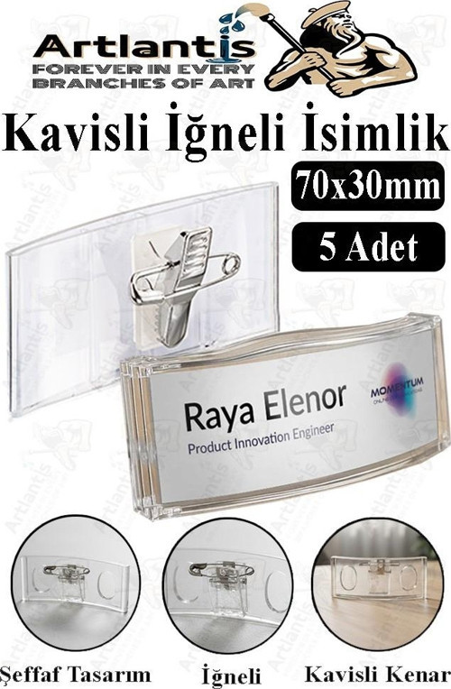 Ürün Adı: Artlantis Şeffaf Kavisli İğneli İsimlik 5 Adet Dikdörtgen İsimlik 70x30cm Personel Yaka İsimliği Şeffaf Kavisli İsimlik Şirket
