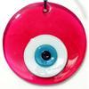 Şeffaf cam nazar boncuk pembenin en güzel tonunda özel tasarım olarak tasarlanmıştır. Tamamen el işçiliği olan ürünümüz 12 x 12 santimetre ölçülerindedir. Bu tasarım harikası ürünümüzü ister kendiniz için, isterseniz sevdiklerinize hediye etmek için tercih edebilirsiniz.