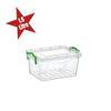 Küçük eşyalarınızı düzenli bir şekilde saklamak için tasarlanmış Şeffaf Saklama Kutusu 1.5 Litre, hem şık hem de işlevsel bir depolama çözümüdür. 10x14x21 cm boyutlarındaki ideal ölçüleriyle mutfak, banyo, ofis ve dolap içi düzenlemelerde pratik kullanım sağlar. Tamamen şeffaf gövdesi, kutu içerisindeki eşyaları kolayca görmenizi sağlar. Yeşil klipsli kapağı, kutunun sıkıca kapanmasını sağlayarak içeriği toz, nem ve dış etkenlerden korur. Sağlam plastik malzemesi uzun ömürlü kullanım sunarken, BPA içermeyen yapısı sayesinde gıda saklamaya da uygundur. Kuru gıdalar, baharatlar, dikiş malzemeleri, ofis gereçleri veya kozmetik ürünleri için mükemmel bir düzenleyici olan bu kutu, istiflenebilir tasarımı sayesinde yerden tasarruf etmenizi de sağlar.