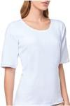 Rahat kesimi ile günlük kullanım için ideal, tüm yaş gruplarına hitap eden düz beyaz yarım kollu pamuklu kaşkorse atlet