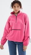 Şeker Pembe Etek Ucu Büzgülü Yarım Fermuarlı Oversize Kadın Polar Sweatshirt - 97238