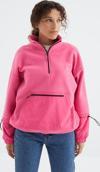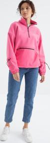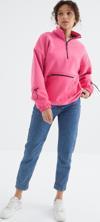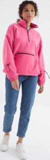 Tommy Life Şeker Pembe Etek Ucu Büzgülü Yarım Fermuarlı Oversize Kadın Polar Sweatshirt - 97238