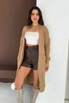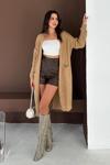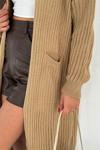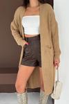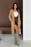 Selanik Örgü Cep Detaylı Uzun Triko Hırka Kahverengi