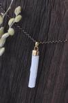 Beyaz tonlarıyla melek taşı olarak da bilinen selenit doğal taş kolye ucu modeli perakende alımlarda zincir takılarak selenit kolye şeklinde gönderilecektir. Kolye ucunun metal kısmı altın kaplamadır.