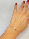 Uzatma zinciriyle her bileğe uygundur. Ortalama 16-17cm +3cm ilave uzatma zincirlidir. Tüm metal malzemeler lak kaplamadır Ortada 6mm yanlarda 4mm taşlardan oluşmaktadır. Bileklik dışındaki görseller satış dışıdır, dekorasyon amaçlı kullanılmıştır!