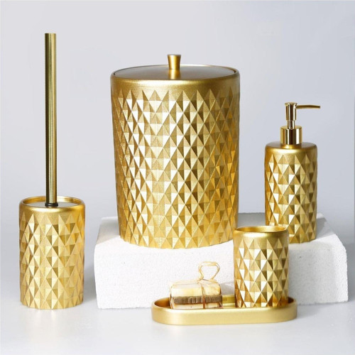 Glowing Banyo Setinin geometrik desenli yapısı, görünümünde modern ve zarif bir etki bırakır. Geniş ve ideal boyutuyla birbirinden işlevsel parçaları, banyonuzun temel unsurlarını birleştirir ve güzelleştirir. Tüm parçaları titiz el işçiliğiyle üretilen bu setin tepsisine havlu, koku ve katı sabunlarınız için kullanabilir, ya da sıvı sabunluk ve diş fırçalığı koyarak lavabonuza dekoratif bir dokunuş katabilirsiniz.