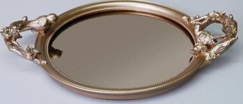 Selim Dekor Velina Aynalı Tepsi Vizon