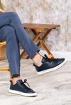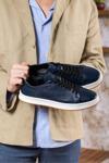 Selin Soylu Erkek Hakiki Deri Sneaker, Casual Ayakkabı, %100 Deri Ayakkabı, 4 Mevsim Erkek Sneaker Lacivert 41