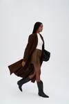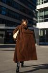 Düz maskülen formda, fleto cep detaylı, uzun kollu, astarlı düğme detaylı, maxi boy süet trençkot.