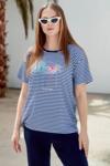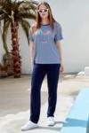 Sementa 76324 Sıfır Yaka Nakış Detaylı Çizgili Penye Takım