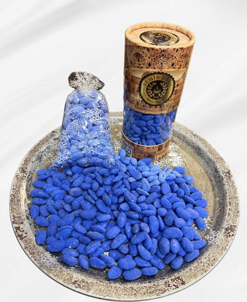 YÖRESEL MARDİN MAVİ BADEM ŞEKERİ ÇİFT BATIRIMLIK 500GR [GÜNLÜK-TAZE GÖNDERİM] – (HEDİYELİK KUTU) NET GRAMAJ : 425 GR’DIR SEMİRBABA KURUKAHVE MARDİN’İN BİLİNEN VE TÜRKİYE’NİN EN İYİ KAHVE KURUYEMİŞ MARKALARINDANDIR.