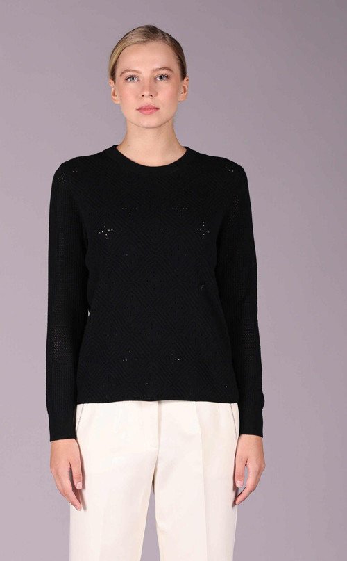 Detay: Bu şık triko kazak, bisiklet yaka ve ajurlu yün dokusu ile hem şıklığı hem de sıcaklığı bir araya getirir. File kollu tasarımı, baklava desenli detayları ve kolu manşet-lastik örgüsü ile dikkat çeken bu kazak, kış aylarında gardırobunuzun vazgeçilmez bir parçası olacak. Yüksek kaliteli malzemesi sayesinde gün boyu rahatlık sunar ve her türlü kombine uyum sağlar. Günlük kullanım için ideal olan bu kazak ile stilinizi ve rahatlığınızı ön plana çıkarın;