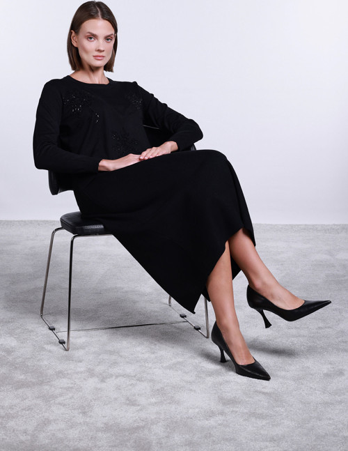 Detay: Bisiklet yaka tasarımıyla sade bir şıklık sunan bu yün içerikli kazak, uzun kollu formuyla soğuk havalarda konfor sağlar. Çiçek şekilli pul işlemeleriyle zarif ve dikkat çekici bir görünüm kazanan model, feminen detaylarıyla öne çıkar. Hem sıcak tutan yapısı hem de estetik dokunuşlarıyla bu kazak, günlük kombinlerde stilinizi tamamlayan özel bir parça olur;