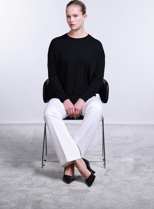 Detay: Bu model, bisiklet yaka tasarımıyla klasik bir sadelik sunarken çift kumaş yapısıyla özgün bir duruş sergiler. Kollar, yan kısımları ve etek ucu kumaş detaylarıyla modern bir kontrast yaratılırken, kalan bölümlerde kullanılan triko dokusu kazak tasarımına sıcak ve konforlu bir hava katar. Yün içerikli yapısıyla hem şıklığı hem de fonksiyonelliği bir arada sunan bu bisiklet yaka kazak modeli, stiline özen gösterenler için ideal bir seçenektir;