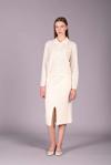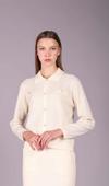 Detay: İnci düğme detaylı, polo yaka, uzun kollu yün hırka ;