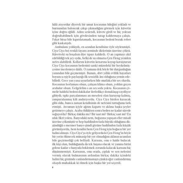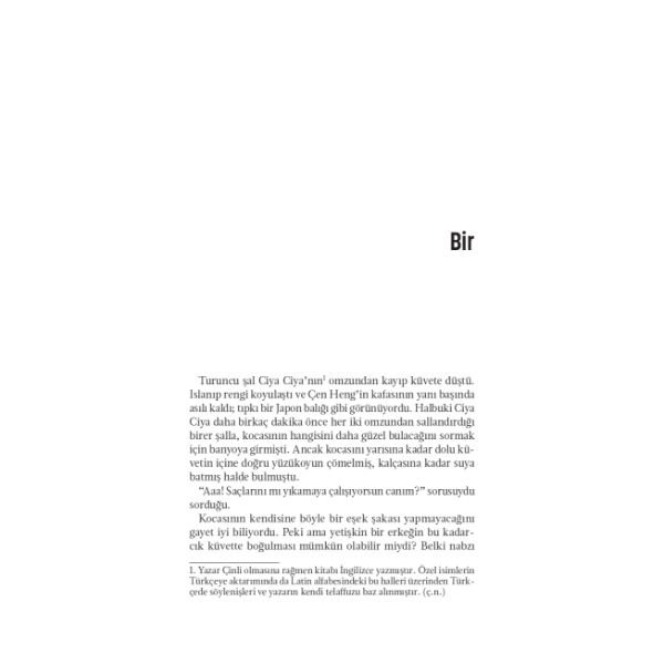 Pekin’de bir sonbahar sabahı... Ciya Ciya yalnızca birkaç dakika önce kahvaltı masasında tatil planları yaptığı kocası Çen Heng’i küvette ölü bulur. Bu beklenmedik ölüm kadar tuhaf bir şey varsa o da küvetin yanında gözüne ilişen gizemli çizimdir. Gördüğü şeyi aklından bir türlü çıkaramayan genç kadın, aklıyla oyun oynayan esrarengiz bir yaratığın peşine takılıp yapmam dediği şeyleri yapacaktır. Barmen Leo ile yası, aşkı, cinselliği ve evliliği sil baştan tanımlaması ise yaşayacağı aydınlanma yanında henüz hiçbir şeydir.