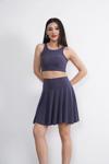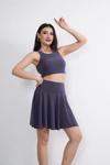 Sendy Kumaş Bisiklet Yaka Crop Şortlu Etek Ikili Takım - Antrasit