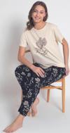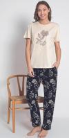Kadın Bisiklet Yaka Kısa Kol Pamuklu Pijama Takımı 6043 -1 Adet Ekru-L