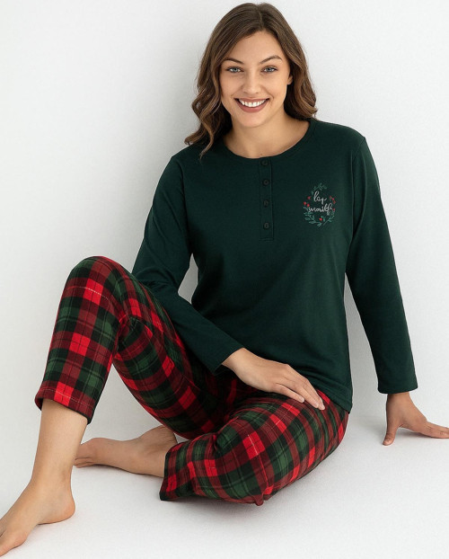 Senfoni Kadın Düğme Yaka Uzun Kol Pijama Takımı 6000Y -1 Adet