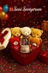 Seni Seviyorum Hediye Kutusu Sevgiliye Özel Romantik Set Kalpli Kutuda Ayıcık ve Kar Küresi En Anlamlı Hediye Seti