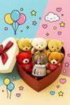 Kalpli Kutu İçinde 5’li Peluş Ayıcık ve Kar Küresi Hediye Seti Sevgiliye Arkadaşa Hediye