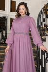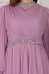 Lavanta Şifon Detaylı Gliten Kumaş Şık Tesettür Abiye - Image 1