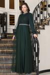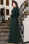 Esilanur Önü Boncuk Aplik İşleme Kolları Tüylü Nara Tesettür Abiye Zümrüt