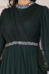Önü Boncuk Aplik İşleme Kolları Tüylü Nara Tesettür Abiye Zümrüt - Image 1