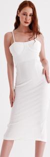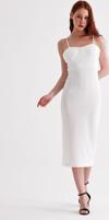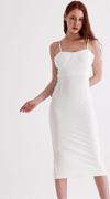 Arka Gizli Fermuarli Gloplu Askili Ottoman Elbise | Elb35442 Ekru