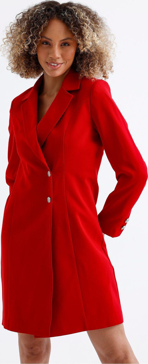 Astarlı Ön Ve Kollar Metal Düğmeli Adriyana Ceket Elbise | CKT35856 Kırmızı