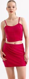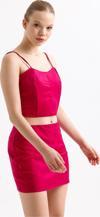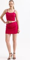 Beli Lastikli Saten Mini Etek | ETK35774 Fuşya