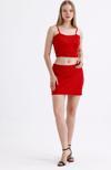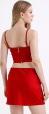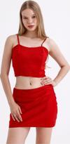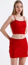 Beli Lastikli Saten Mini Etek | ETK35774 Kırmızı