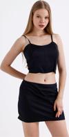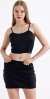 Beli Lastikli Saten Mini Etek | ETK35774 Siyah