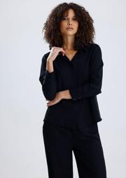 Dubai Kumaş Uzun Kol Gizli Pat Kadın Gömlek | GML36145 Siyah